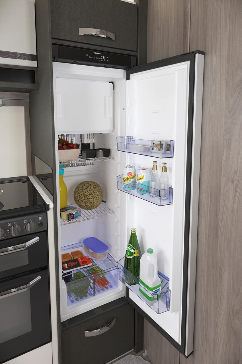Dual hinged Dometic 133 litre tall slimline fridge with 12 litre removable freezer