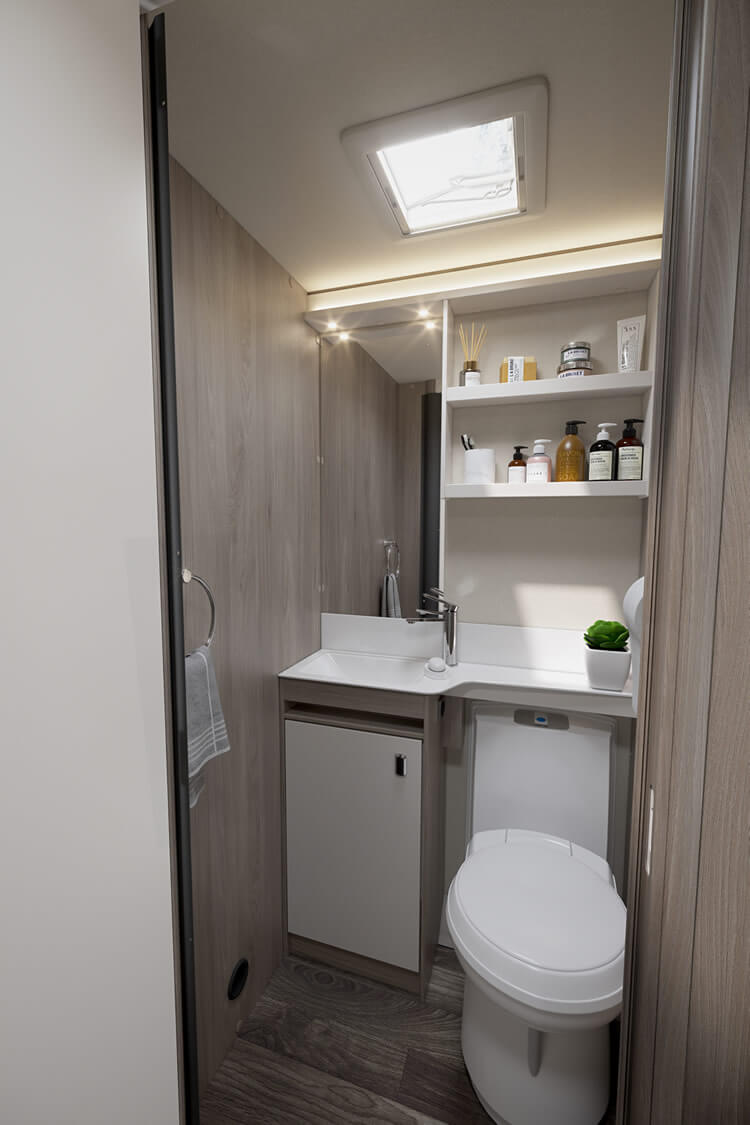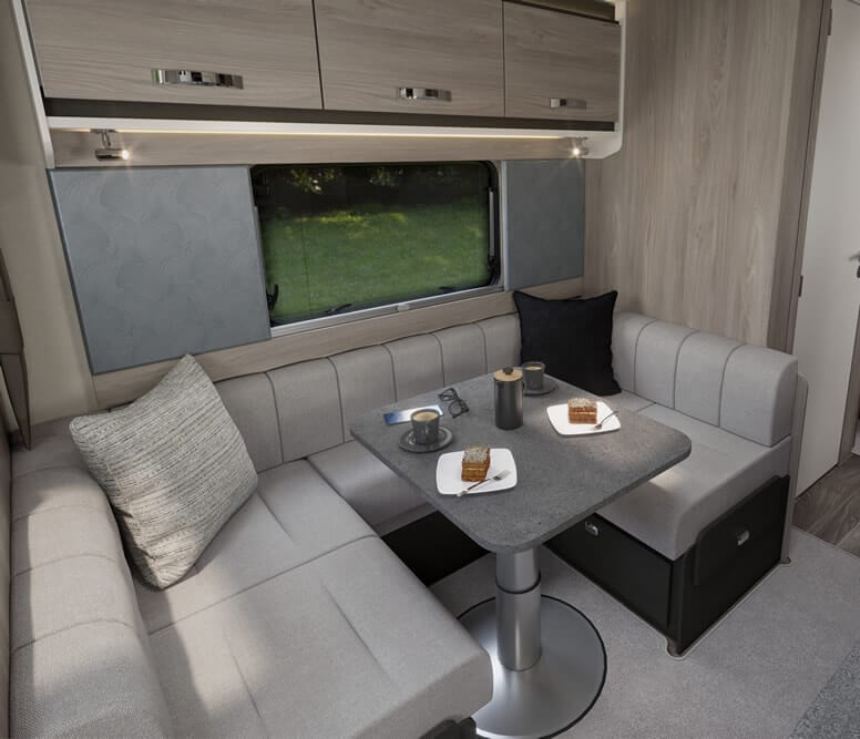 Challenger Grande excels in delivering a welcoming and spacious caravan interior. The extra width allows for a wider opening central window, a larger front bed make-up and exterior access lockers provide convenient storage solutions for all your travel essentials. Every aspect is designed to give you more room to relax and enjoy your time on the road.